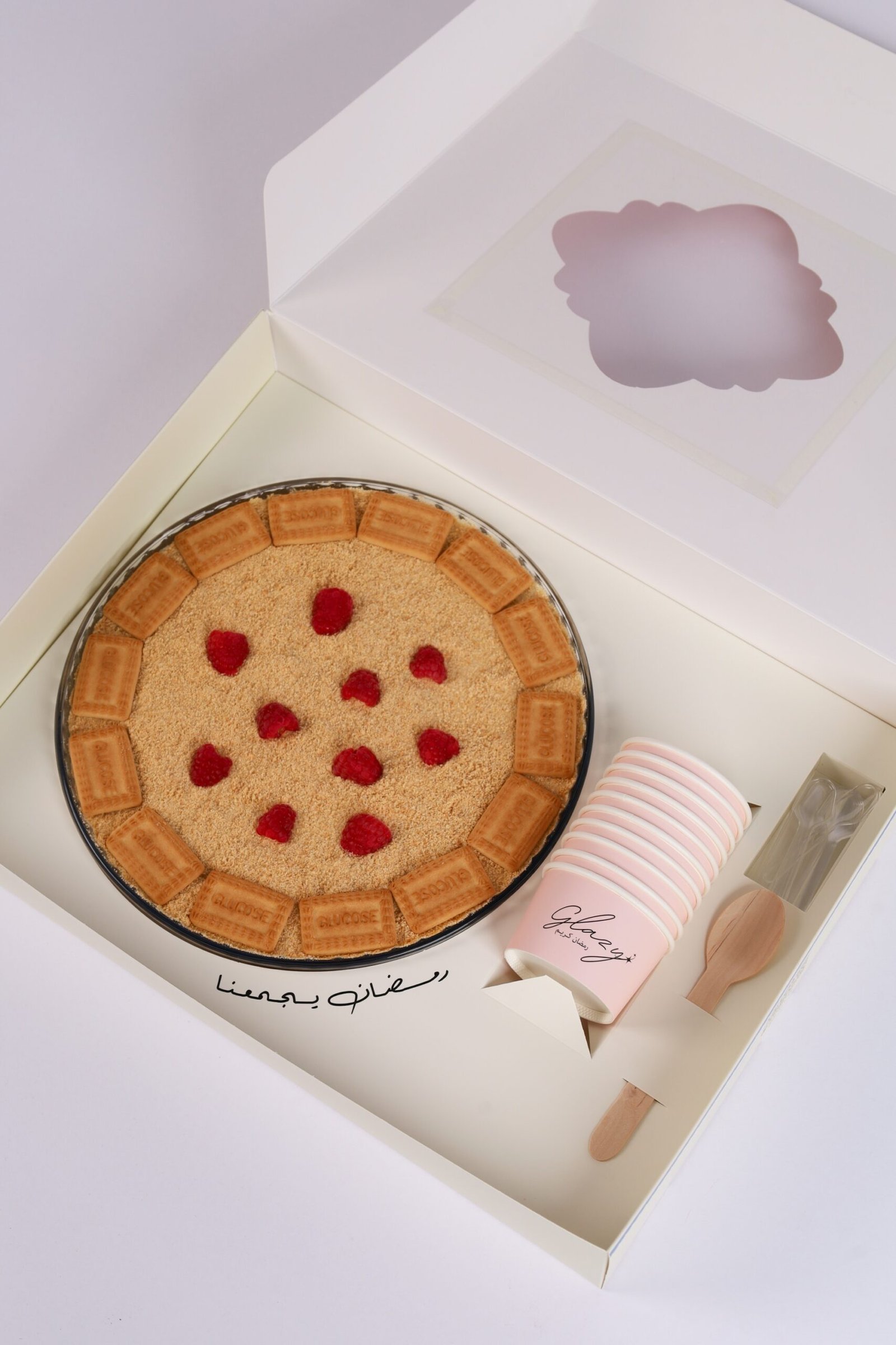 بودنق بارد وكريمي بطبقات من الحليب الغني وبسكويت الجلكوز، قوامه جوسي ومتوازن، مع لمسة رازبيـري منعشة تضيف نكهة راقية وخفيفة. حلى أنيق يناسب التقديم الفاخر ويقدّم بارد يكفي من 12 الى 15 شخص و يشمل 12 كوب للتقديم